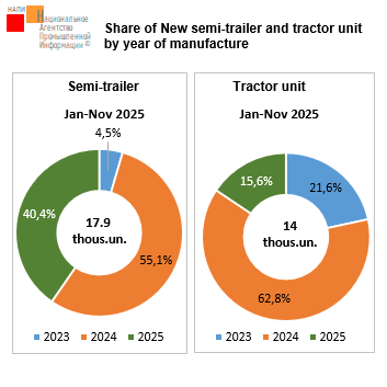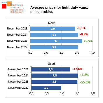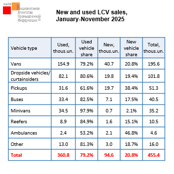 It should be noted that the share of used vehicles in LCV sales in January-November 2025 grew by 4 p.p. on the similar period last year and reached 79.2%. The largest share in used vehicle sales belonged to minivans (97.9%). The share of new vehicles increased only in ambulance sales by 0.2 p.p.