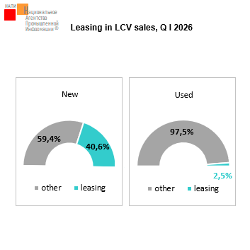 Leasing accounted for 52.1% of new trailer and semi-trailer sales in January-March of the current year, its share grew by 8.7 p.p. on the last year. The growth in share was due to the fact that the overall new trailer market declined more sharply than the new vehicle leasing, falling by 45.2%. The share of leasing in used trailer sales was 17.9%, up 3.6 p.p. on the last year.