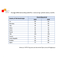 In 2025, initial ownership periods for most car brands increased. In 2025, private owners maintained the longest ownership periods for American brands – 108 months (+8 months on 2024) – and British brands – 93 months (+5 months). The initial ownership period for French (+8 months), Czech (+8 months), Japanese (+8 months), German (+7 months), and Swedish (+5 months)...