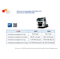 In 2024, the tractor unit cost was 8,876,136 rubles, while in 2025, the price for a vehicle manufactured in 2025 was 7,831,000 rubles.