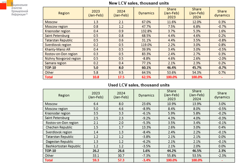 According to the marketing agency NAPI, in January-February 2024, sales of new light commercial vehicles (LCV) increased by 62.5%, while the used LCV market decreased by 3.4%.