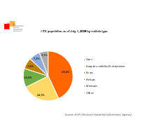 According to the marketing agency NAPI, the LCV* population numbered 5.3 million vehicles as of July 1, 2025. Vans account for 43% or 2.6 million units of them. Dropside vehicles or curtainsiders occupy the second place with a share of 24.5% of the population (1.3 million units). Buses account for 12.4% (650 thousand units), while pickups and minivans - for 7.2% each (381 thousand and 376 thousand units, respectively). It should be noted that the share of Chinese vehicles in the LCV population...