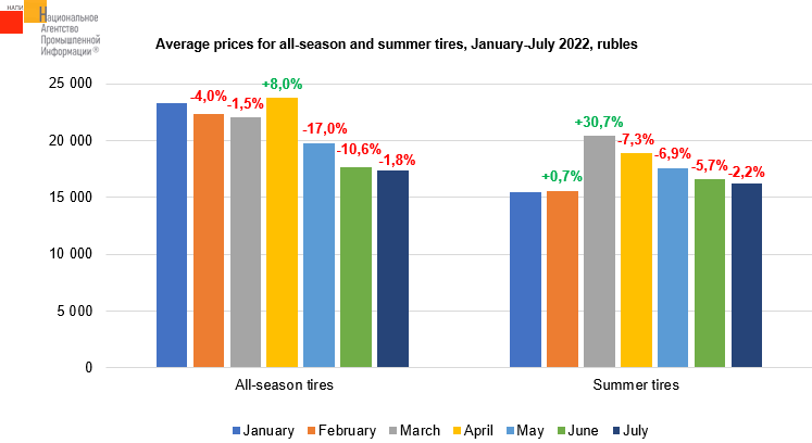 The agency NAPI (National Industrial Information Agency) analyzed the dynamics of new tire prices in January-July 2022 for all standard car, light commercial vehicle, and trucks sizes presented in the Russian market.
