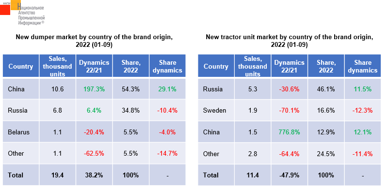 Chinese vehicles became leaders in the dumper segment following results of the first nine months of 2022, whereas last year the first place was occupied by Russian dumpers.