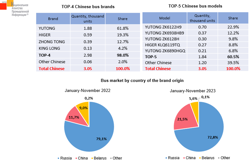 According to the marketing agency NAPI, over 11 months of 2023, sales of new Chinese buses grew by 141.7%, while the entire market was up by 31.6%. The share of Chinese buses reached 21.5% this year. YUTONG became the leader in the Chinese bus market.