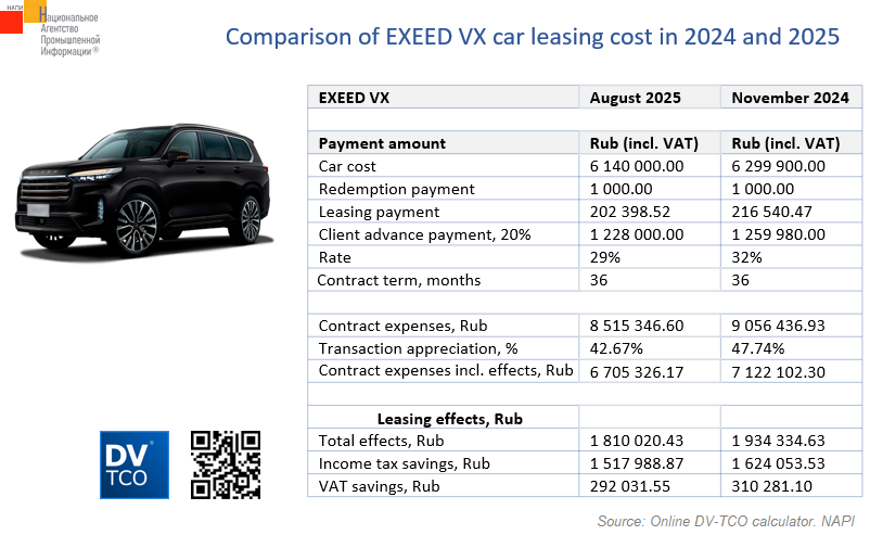 Thus, purchasing EXEED VX car on lease this year became more profitable than it was in 2024.