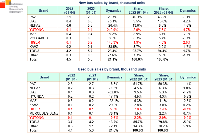 It is interesting to note that two Chinese brands (HIGER and YUTONG) are among the leaders by sales of both new and used buses.