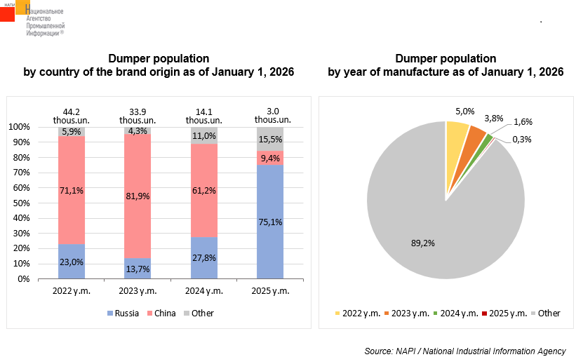 The situation is different with vehicles manufactured in 2025: the share of Chinese dumpers is 9.4%, while that of Russian ones reaches 75.1%.