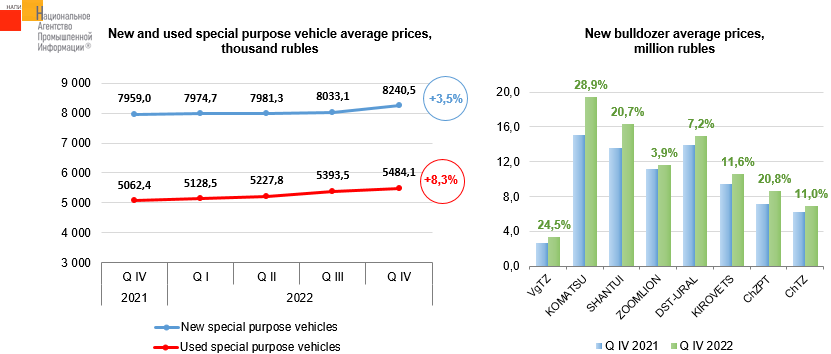 The marketing agency NAPI analyzed the prices for new and used special purpose vehicles. In Q IV of the last year, average prices for new special purpose vehicles grew by 3.5% on Q IV 2021. Average prices for used special purpose vehicles increased by 8.3% over the year. If average prices are compared with those in Q III 2022, in Q IV of the last year the average price for new special purpose vehicles was up by 2.6%, while that for used ones - by 1.7%.