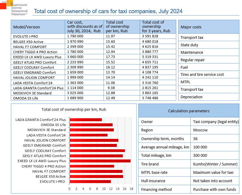 The marketing agency NAPI (National Industrial Information Agency) analyzed how much it costs taxi companies to own different cars over three years of operation.