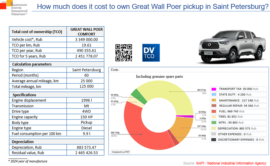 The marketing agency NAPI analyzed the total cost of ownership of GREAT WALL POER COMFORT pickup using the online DV – TCO total cost of ownership calculator.