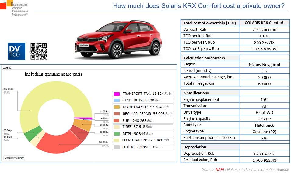 The marketing agency NAPI analyzed the total cost of ownership of SOLARIS KRX Comfort hatchback using the online DV-TCO total cost of ownership calculator.