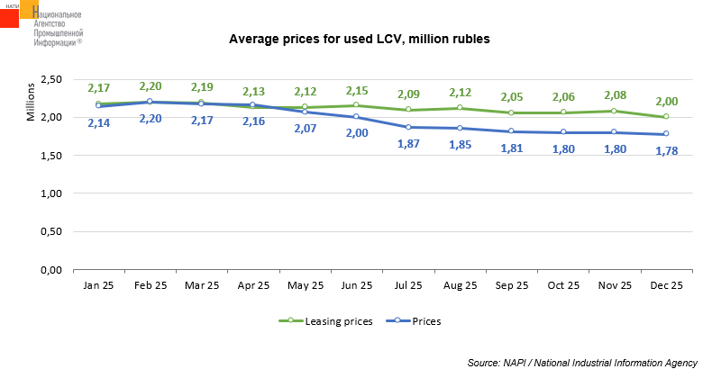 The marketing agency NAPI analyzed the dynamics of average prices* and prices* from leasing companies for used** light commercial vehicles*** for January-December 2025.