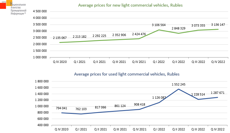 According to the NAPI (National Industrial Information Agency), following results of Q IV 2022, the average price for new light commercial vehicles (RRP) increased by 2.0% on Q III 2022. In Q IV 2022, the average price for used vehicles (according to the largest Internet aggregators) grew by 4.8% on Q III 2022. Over the year, the average price for new vehicles increased by 29.4%, while that for used vehicles – by 41.7% on Q IV 2021.