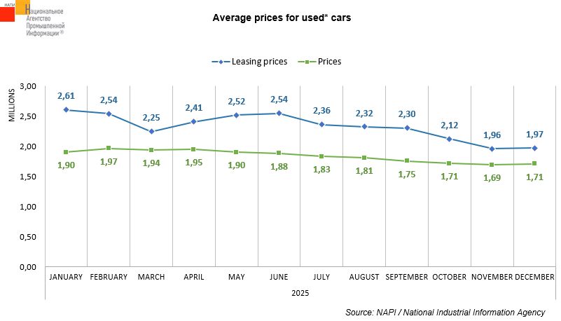 The marketing agency NAPI analyzed the dynamics of average prices for used* cars and used cars from leasing companies for January-December 2025.