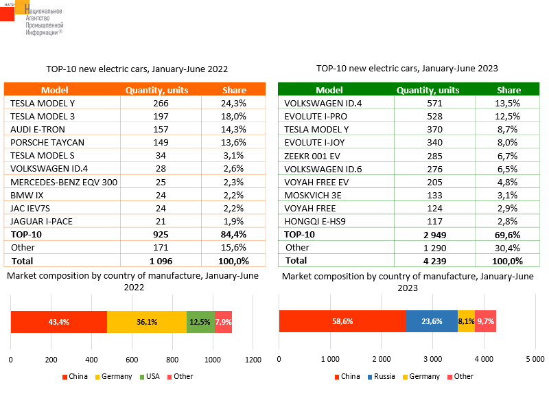 According to the marketing agency NAPI, in the first half of 2023, the new electric car market soared by 287%, 4.2 thousand new electric cars were sold. The market structure has changed significantly over the year. More than half of the market was occupied by electric cars manufactured in China, including VOLKSWAGEN, TESLA, and other non-Chinese brands. Electric cars manufactured in Russia accounted for almost 24%.
