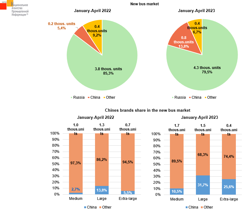 According to the marketing agency NAPI, in the new bus market, the positions of Chinese brands are not so strong: following results of January-April of the current year, Chinese vehicles accounted for 13.8%.