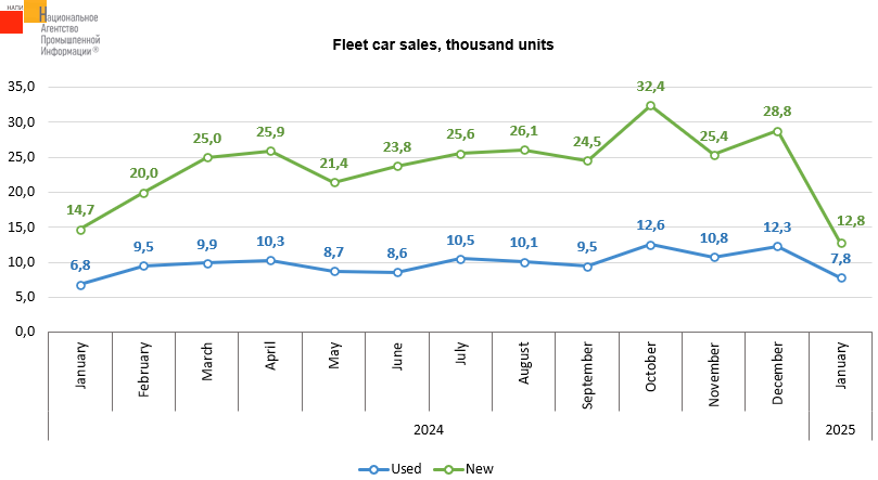 According to the marketing agency NAPI, in January 2025, sales of new fleet cars decreased by 13.2% on January last year. The peak of new car sales to corporate clients took place in October and December last year. Sales of used fleet cars in January 2025, on the contrary, increased by 14.6%. The peak of used car sales also took place in October and December 2024.