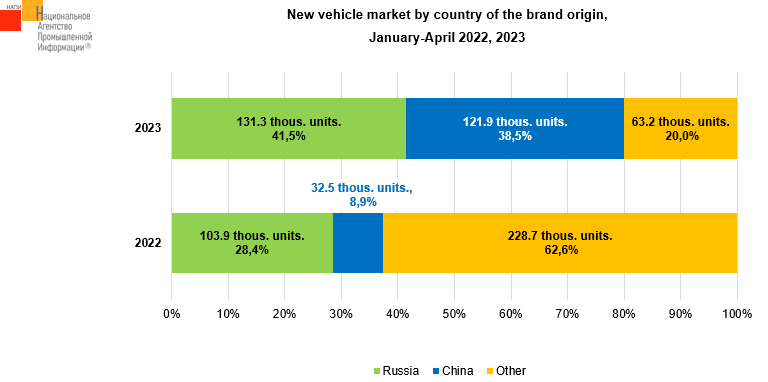 On the one hand, the share of Russian vehicles increased from 28.4% to 41.5%. On the other hand, the share of Chinese brands has grown even more impressively – from 8.9% to 38.5%.