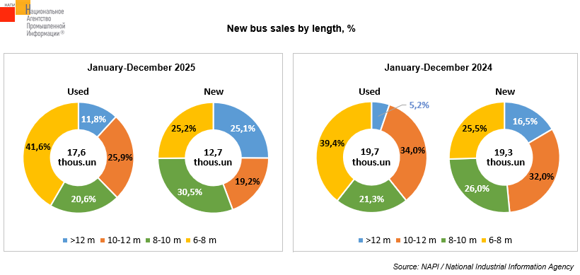 According to the marketing agency NAPI, 30.3 thousand new and used buses were sold in January-December 2025, which was a 22.4% decline on the previous year, when 39 thousand buses were sold. Of them, 12.7 thousand units were new (-34.1% on 2024), and 17.6 thousand units were used (-10.9%).