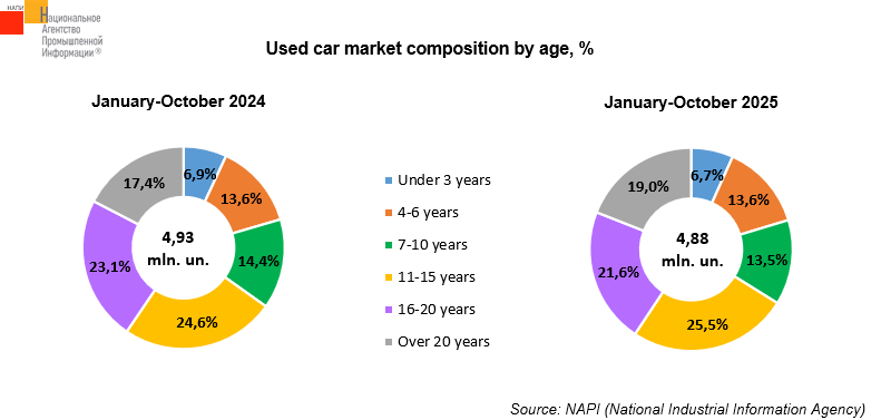It should be noted that in January-October 2025, sales of cars aged over 20 years are only slightly inferior to those of new cars. Thus, over the first 10 months of the current year, 0.93 million cars aged over 20 years were sold, and the number of new cars sold was more by only 0.12 million units, while over the similar period last year, the difference was 0.43 million units.