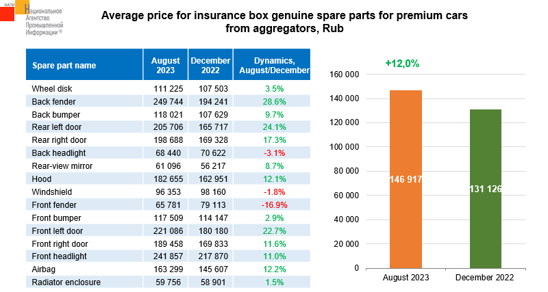 The marketing agency NAPI analyzed insurance box genuine spare parts’ prices for premium cars from aggregators.