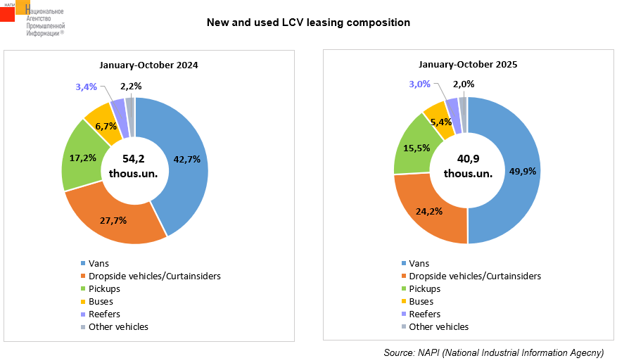 According to the marketing agency NAPI, 40.9 thousand new and used LCV* were leased to corporate clients in January-October 2025, which was a 24.5% decline on the similar period of 2024, when 54.2 thousand LCV were leased.