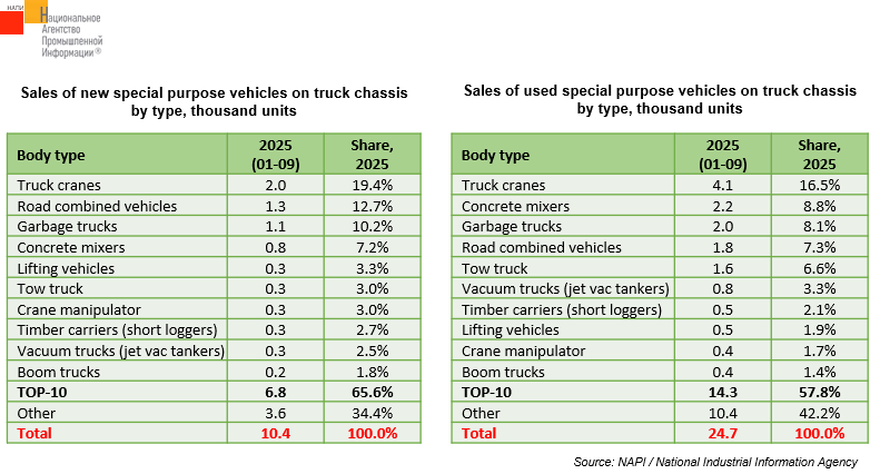 According to the marketing agency NAPI, in January-September 2025, 10.4 thousand new and 24.7 thousand used special purpose vehicles on the truck chassis were sold*.