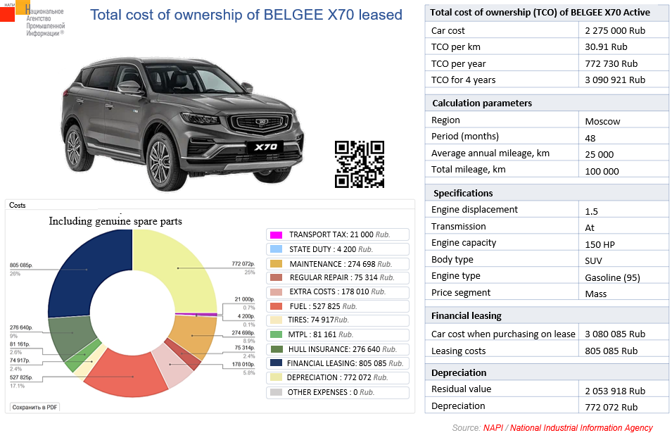 The marketing agency NAPI analyzed the total cost of ownership of BELGEE X70 Active car using the online DV – TCO total cost of ownership calculator.