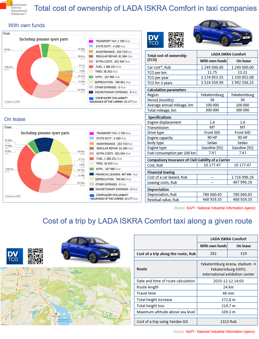 The marketing agency NAPI compared the total cost of ownership of LADA ISKRA Comfort used as taxi purchased with private funds and leased. The calculation was performed using the online DV-TCO total cost of ownership calculator.