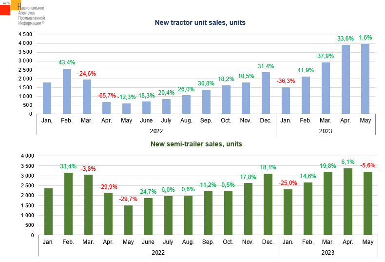 According to the marketing agency NAPI, over the first five months of the current year, the new semi-trailer market grew by 20.9%, 14.8 thousand new semi-trailers were sold against 12.2 thousand units sold in the previous year. New tractor unit sales over 5 months of the current year soared by 91.4%, from 7.6 thousand units in January-May last year to 14.5 thousand units.