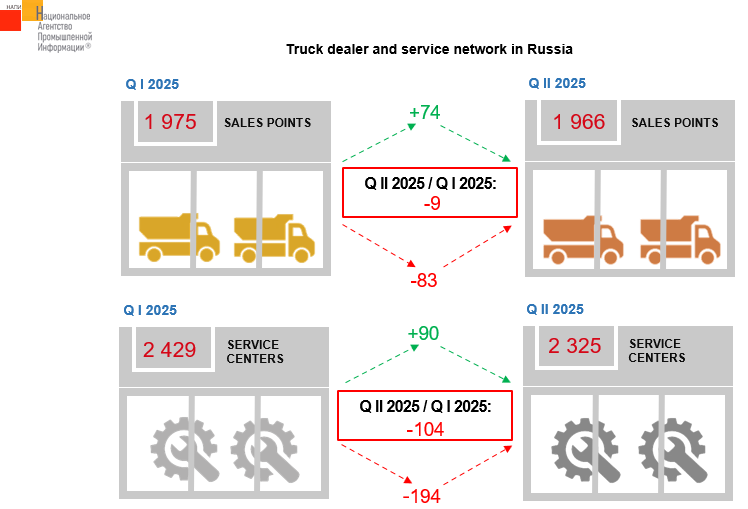 The marketing agency NAPI updated the report on truck dealerships and service centers in Q II 2025. Compared to Q I 2025, the number of authorized sales points decreased by 9 units, primarily due to decrease in the number of SANY, SITRAK and HOWO dealerships. The number of authorized service centers fell by 104 units over the quarter.