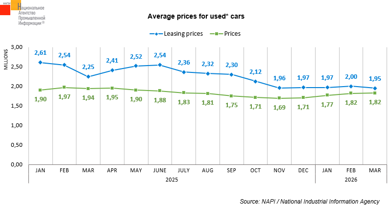 The marketing agency NAPI analyzed the dynamics of average prices for used* cars and used cars offered by leasing companies for the period from January 2025 to March 2026.