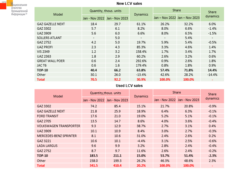 According to the marketing agency NAPI, over eleven months of 2023, sales of used light commercial vehicles (LCV)* exceed those of new ones 4.5-fold.