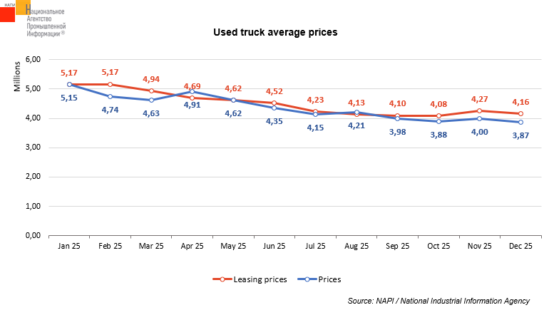 The marketing agency NAPI analyzed the dynamics of average prices and prices from leasing companies for used* trucks for January-December 2025.