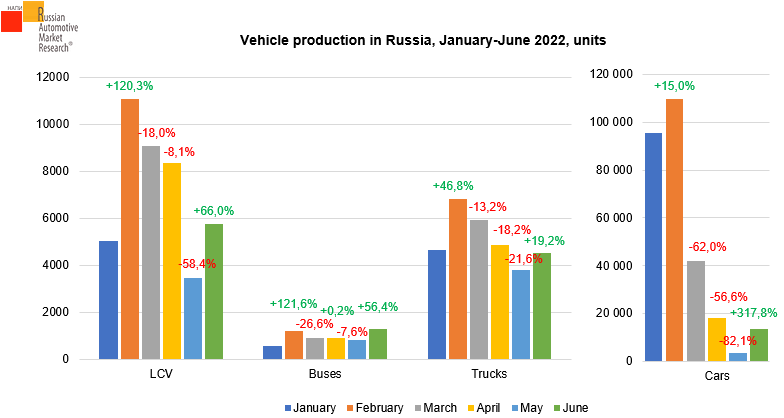 Bus production recovered in June, the result of June (1.3 thousand units) is the best over all six months of 2022.