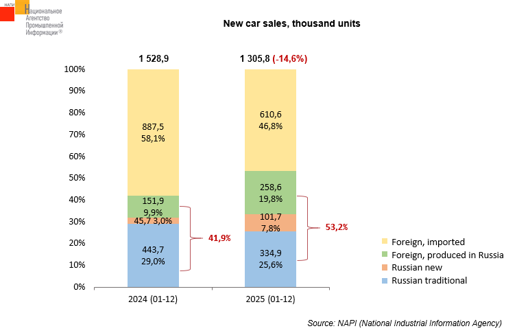 The marketing agency NAPI analyzed sales of new cars of Russian and foreign brands in 2025.