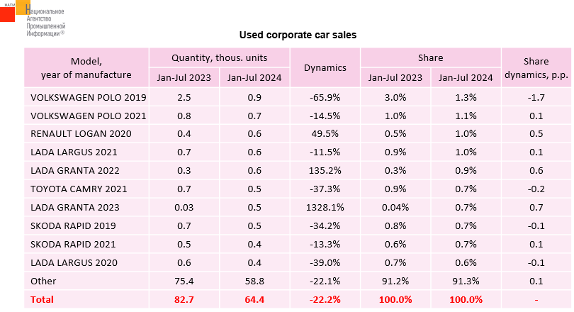 According to the marketing agency NAPI, sales of used cars to corporate clients fell by 22.2% over the first seven months of 2024, while those of new ones grew by 33.3%.