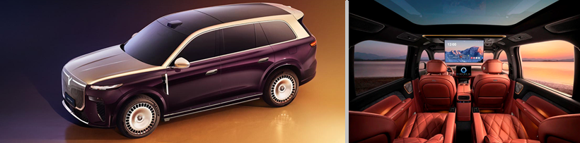 The Voyah Taishan's interior features six seats in 2+2+2 configuration, with the second-row "captain's" seats featuring electrical adjustments, including footrests.