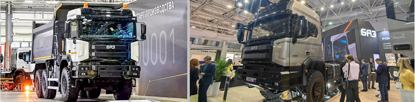 The brand's line-up includes chassis, tractor units, dumpers and dropside platforms, featuring 6×6 wheel arrangement, fully independent suspension and 400 mm road clearance.
