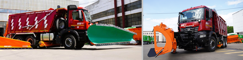 The road vehicle is designed to clean the roadbed and roadside from snow, cut ice and distribute deicing materials in the winter, as well as wash, sweep and dedust roads and roadsides in summer. In addition, the vehicle can be used in washing and disinfecting streets and roadside buildings during the fight against the spread of coronavirus infection.