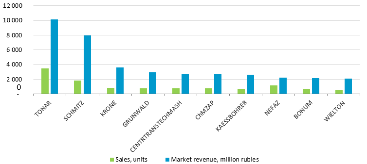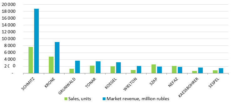 According to the Marketing Agency NAPI (National Industrial Information Agency), 133.9 billion rubles were spent on the purchase of new and used trailers over eight months of 2022. The new trailers accounted for 42.4% of this amount, while their share in the sales structure "in quantitative terms" was slightly more than a third. TONAR is a leader in the new trailer market by financial indicators, SCHMITZ is a leader in the used trailer market.