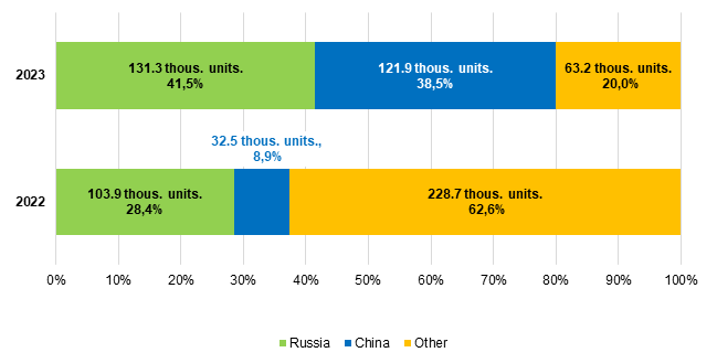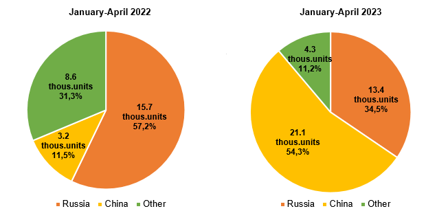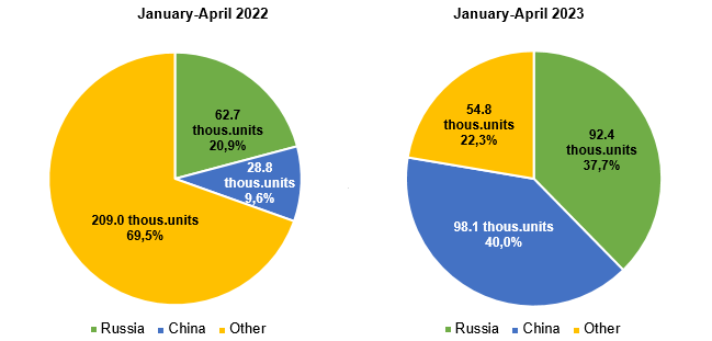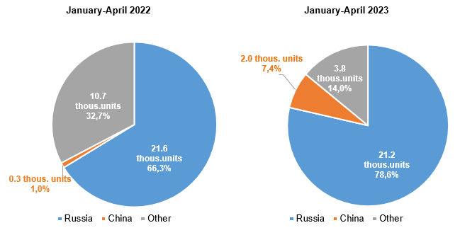The market composition also changed significantly because the most automotive brands left the market. On the one hand, the share of Russian vehicles increased from 28.4% to 41.5%. On the other hand, the share of Chinese brands has grown even more impressively – from 8.9% to 38.5%.