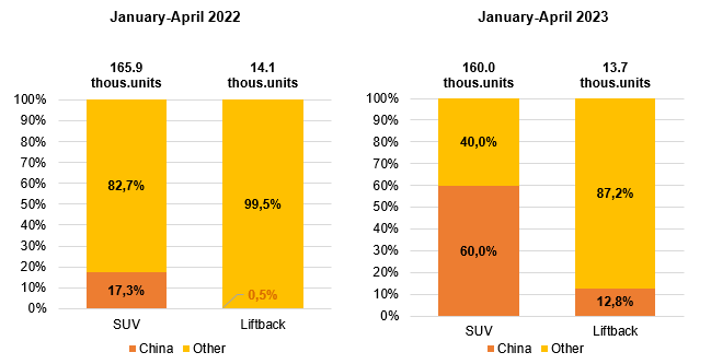 The share of Chinese brands has grown to 40% over the year in the car market: first, Chinese brands are mastering the SUV segment, where they accounted for 60%, following results of four months of 2023.