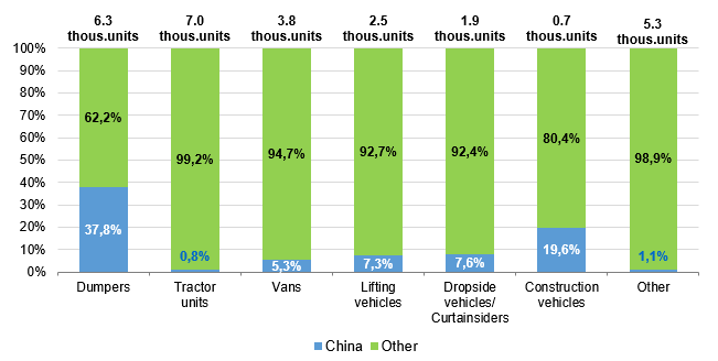 Chines brands share in the new truck market,