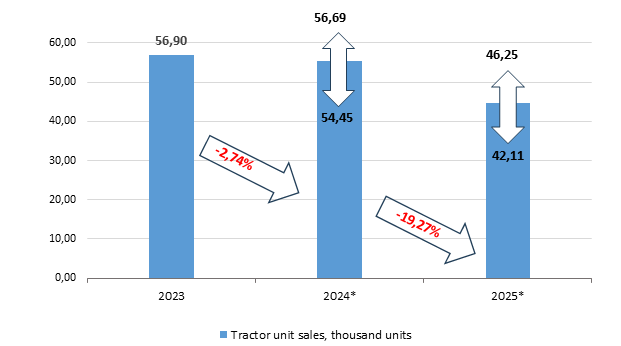 Moreover, in 2025, high loan and leasing rates, increase in the recycling tax for these vehicles and stricter conditions for their certification will have a negative impact on tractor unit sales.