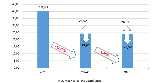 Nevertheless, the volume of dumper sales may decrease slightly in 2025 against the background of a general decline in the truck market. Moreover, in 2025, high loan and leasing rates, increase in the recycling tax for these vehicles and stricter conditions for their certification will have a negative impact on dumper sales.
