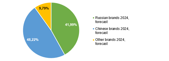 - In 2024, the share of Chinese brands in the Russian market will remain unchanged on 2023. Sales of Chinese cars manufactured in Russia will continue (at the Haval Motor Manufacturing Rus LLC and AVTOTOR Group plants). Chinese cars will likely be manufactured at other sites.