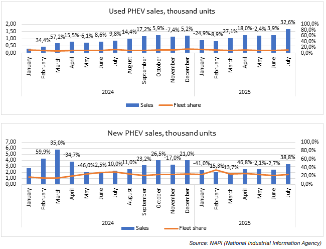 The marketing agency NAPI analyzed the market of new and used electric and plug-in hybrid cars for the period from January 2024 to July 2025.