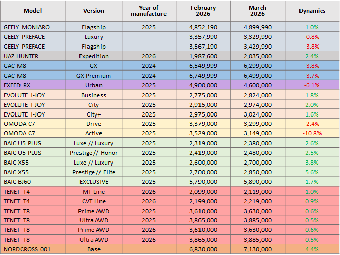 31.03.2026 / Which cars appreciated to 6% in March, which ones depreciated to 11%